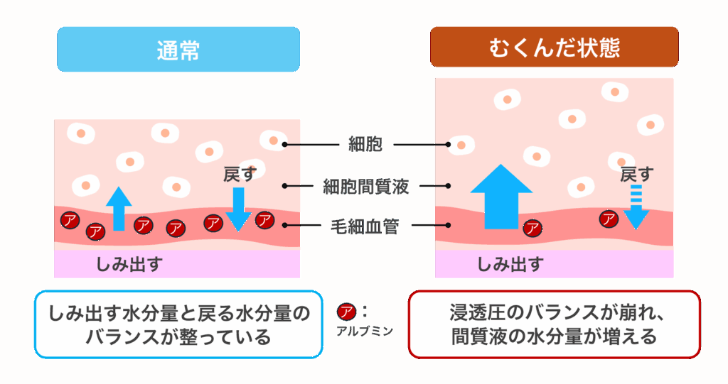 アルブミン濃度の低下とむくみのメカニズム